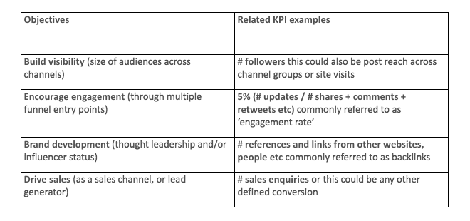 Setting objectives and KPIs
